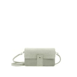 Un sac à bandoulière en cuir blanc avec un rabat avant et une bandoulière réglable, présenté sur un fond blanc uni.Un sac bandoulière en cuir blanc avec un rabat avant et une bandoulière réglable est positionné sur un fond gris uni.